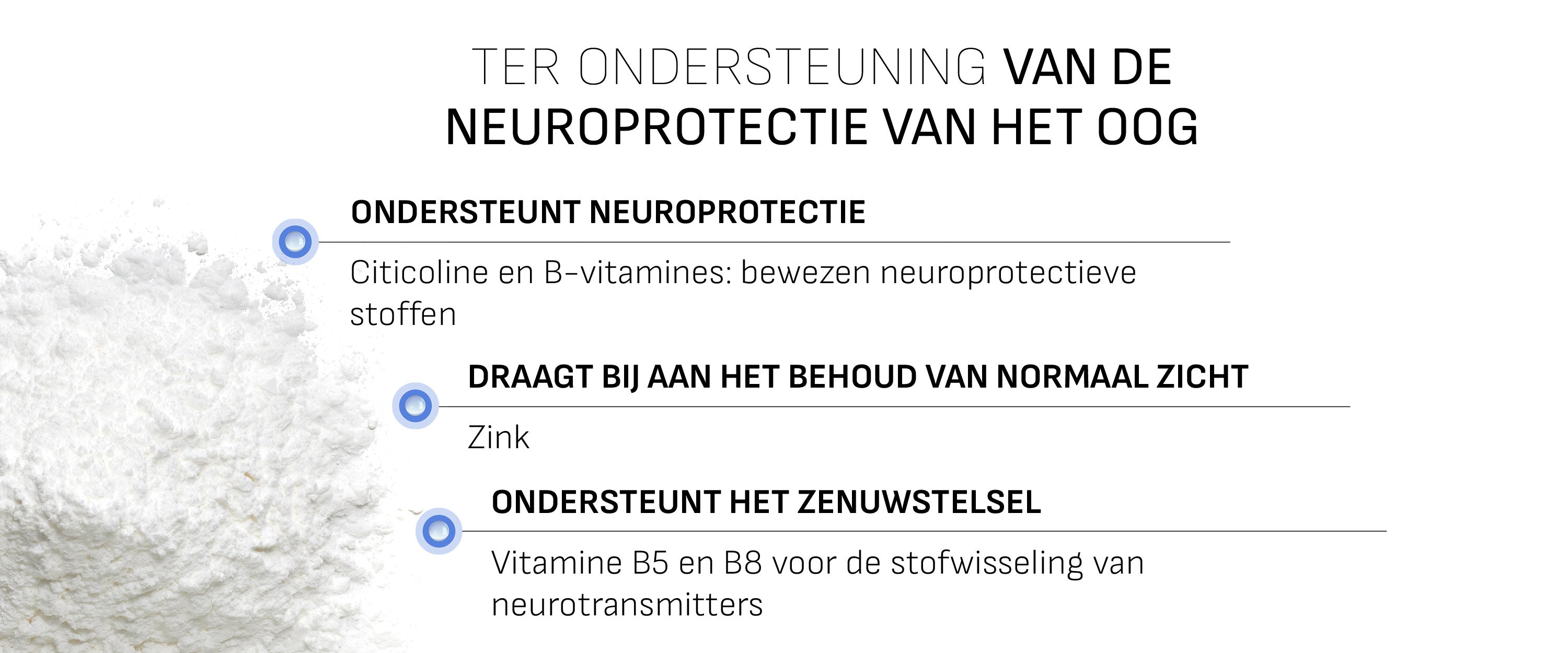 - Behoudt een normaal gezichtsvermogen (zink)
