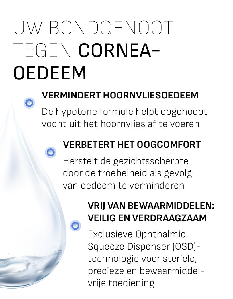 - Vermindert cornea-oedeem en sub-oedeem.