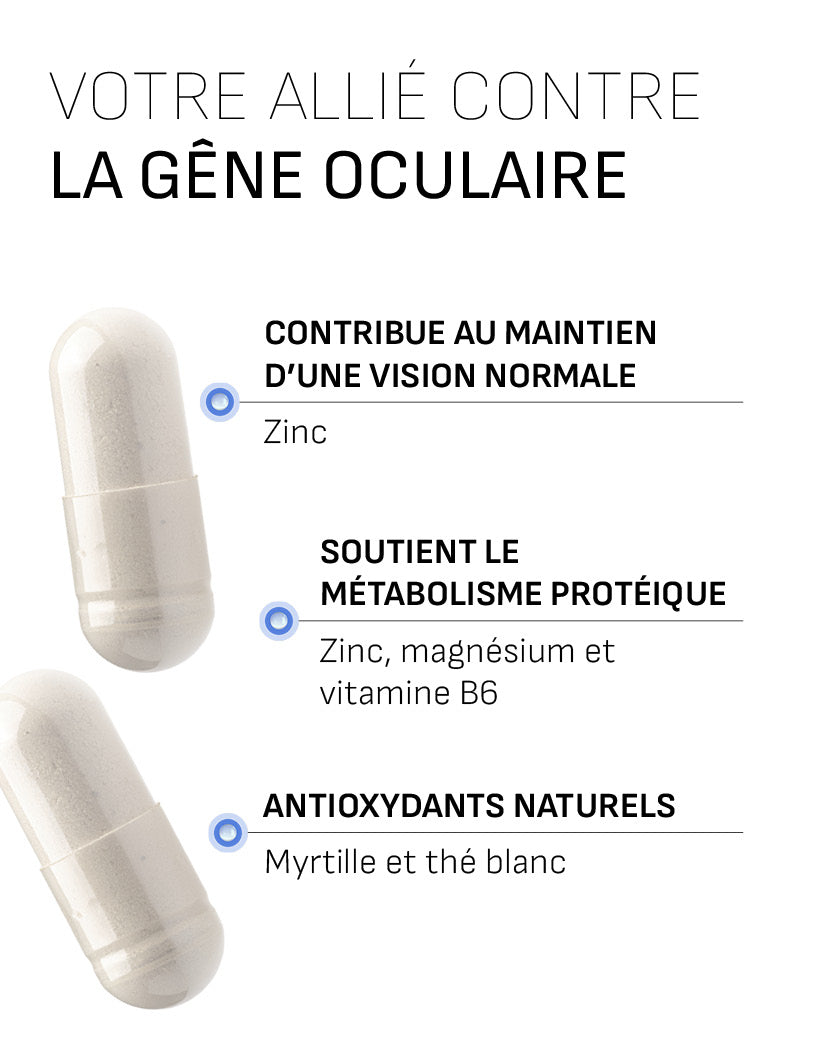 - Contribue au maintien d’une vision normale (grâce au zinc)